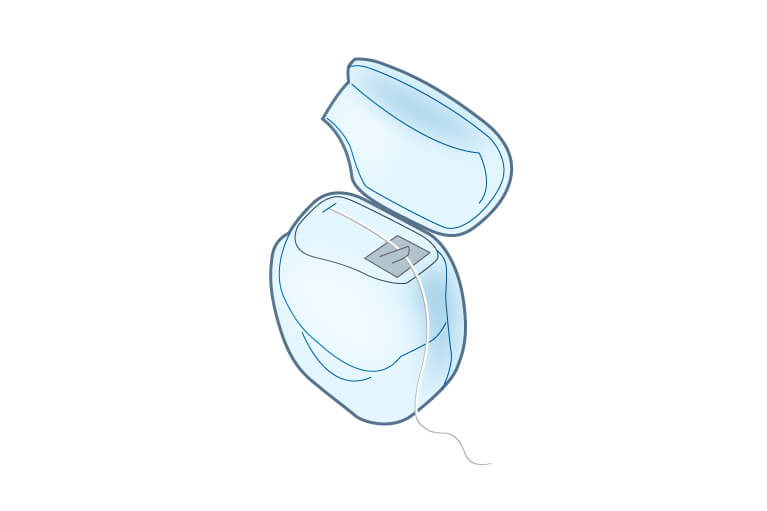 歯磨き後にデンタルフロスを使えば、歯間ブラシでも入り込めない狭い隙間からプラークをかき出すことができます。両手でフロスをピンと張り、歯と歯の間に入れて上下に動かします。